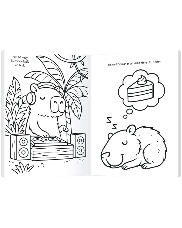 Följ med världens mysigaste gnagare på färgglada äventyr! I Målarbok – Kapybara möter barnen en charmig kapybara som DJ, drömmer om tårta och dyker upp i fler humoristiska scener.