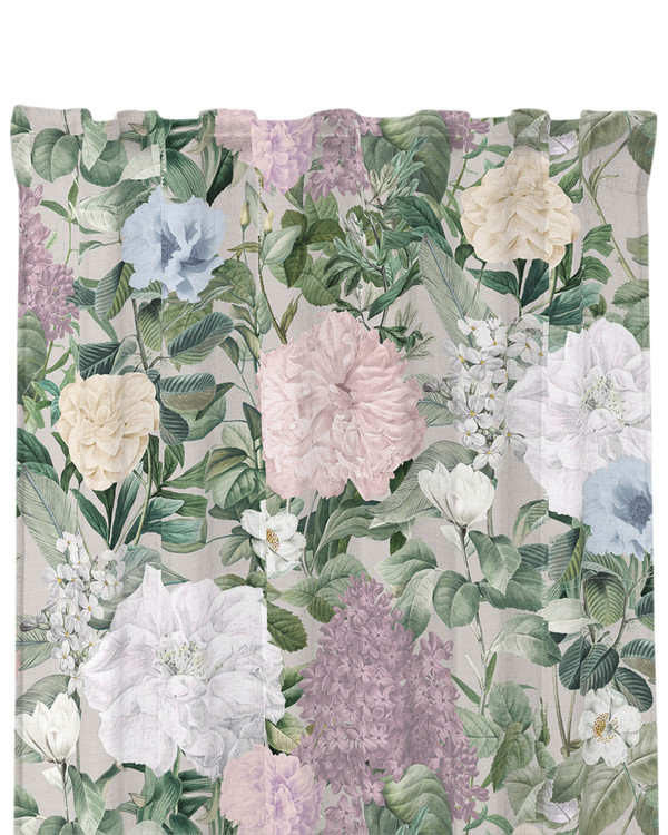 Exklusiva gardinlängder med ett tungt fin fall och romantiskt digitaltryckt blommotiv.Multibandet på baksidan har ett flertal upphängningsfunktioner.
