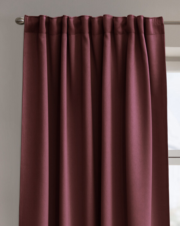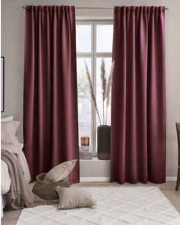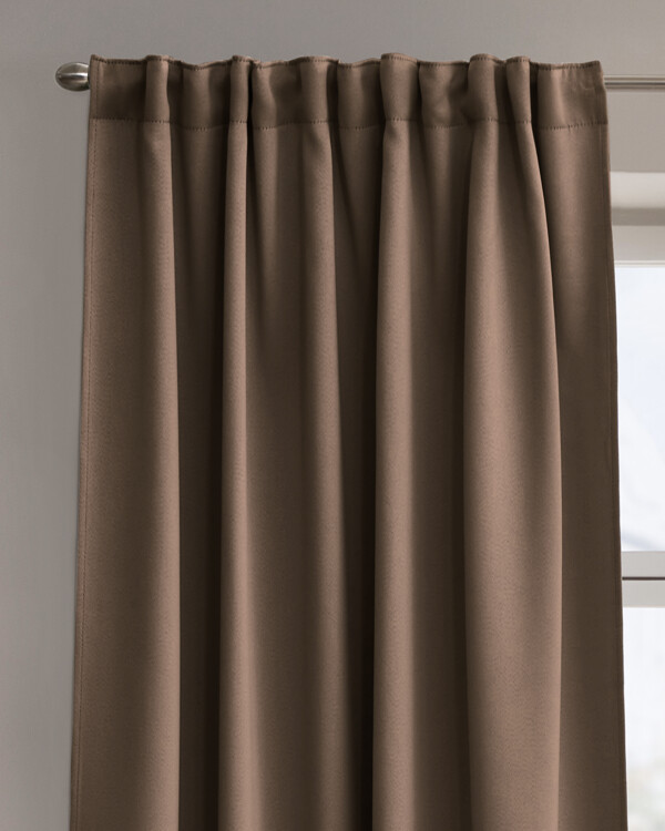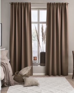 Lyxig mörkläggningsgardin med fint fall och som stänger ute ljuset till 90-95%. Tätvävd såpass mycket att beläggning ej behövs. Multibandet på baksidan har ett flertal upphängningsfunktioner.