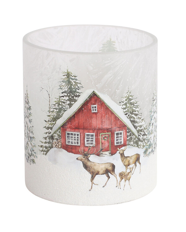 Skapa en magisk vinterstämning med denna charmiga ljuslykta. Lyktan pryds av ett vinterhus med snötäckta tak och glittrande landskap. Finns i två storlekar – perfekt att kombinera eller placera var för sig för att sprida värme i hemmet. Tänk på att aldrig lämna levande ljus obevakade!
