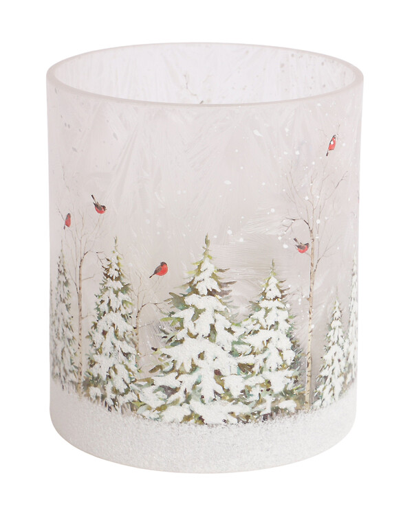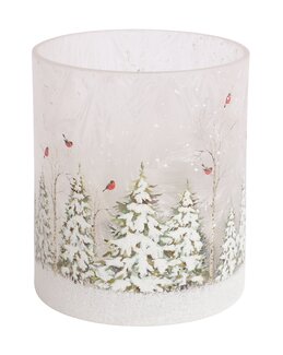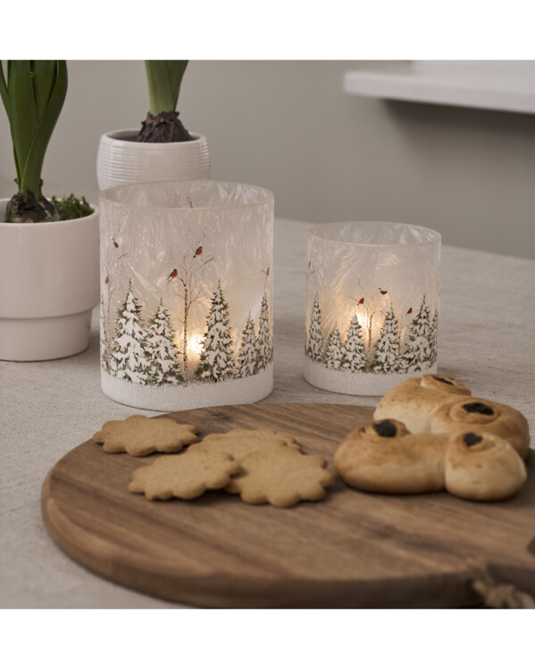 Skapa en magisk vinterstämning med denna charmiga ljuslykta. Lyktan pryds av vackra vintergranar i ett fridfullt landskap. Finns i två storlekar – perfekt att kombinera eller placera var för sig för att sprida värme i hemmet. Tänk på att aldrig lämna levande ljus obevakade!