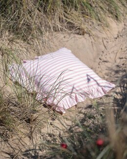 Gardiner > Färger > Rosa gardiner > Kuddfodral Svea randigt med volang 1-pack