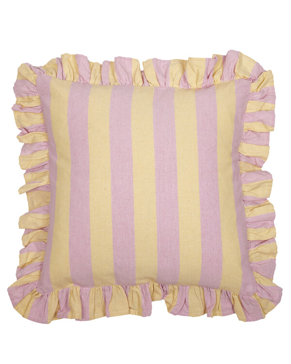 Gardiner > Färger > Rosa gardiner > Kuddfodral Amalia randigt med volang 1-pack
