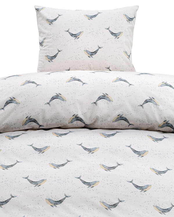 Ge sovrummet en lekfull och fantasifull känsla med detta gulliga bäddset prytt med valmotiv i härliga blå toner. Tillverkat i mjuk och bomull som är skön mot huden och ger en behaglig nattsömn. Påslakanet har handhål upptill. OEKO-TEX MADE IN GREEN
