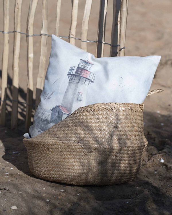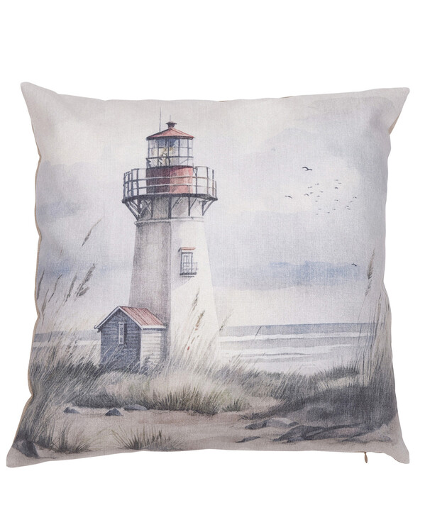 Ge ditt hem en rofylld kustkänsla med detta vackra kuddfodral föreställande en fyr vid havet. Motivet skapar en lugn och harmonisk atmosfär, perfekt för att ta in strandens stillhet i vardagsrummet eller sovrummet.