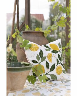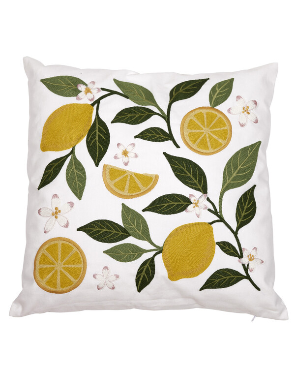 Ge ditt hem en fräsch och lekfull känsla med detta kuddfodral. Den vita bakgrunden framhäver det glada citrondmotivet och skapar en ljus och inbjudande atmosfär i soffan, fåtöljen eller på sängen.
