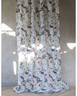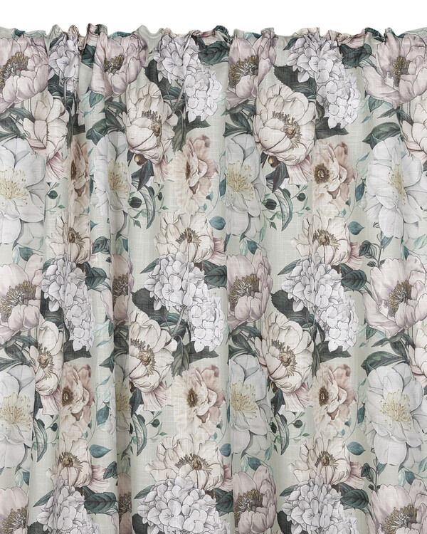 Skapa ett mjukt och harmoniskt uttryck i rummet med denna eleganta multibandslängd. Det romantiska pionmönstret ger ett lugnt, blomstrande intryck och passar lika bra i vardagsrum som i sovrum. Multibandet gör att längden kan hängas smidigt och enkelt.