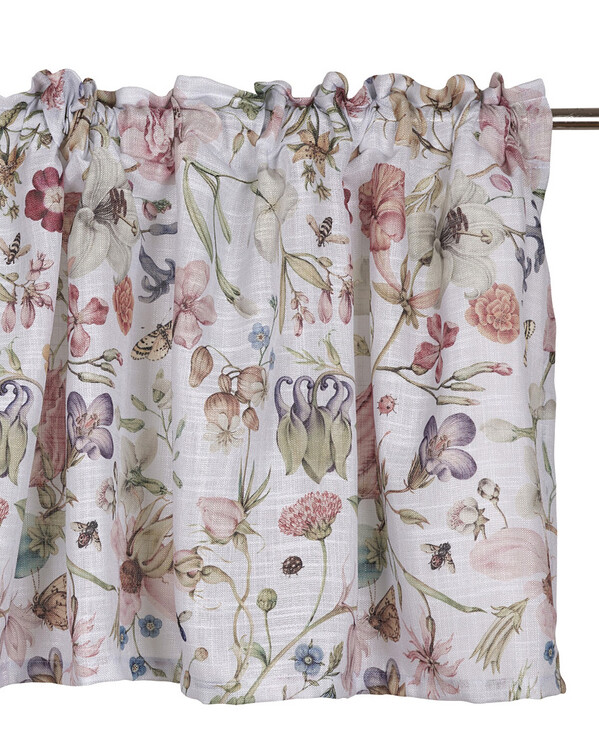Låt ljuset flöda in och rummet blomstra med denna vackra multibandskappa. Det blommiga mönstret i mjuka rosa nyanser ger ett romantiskt och ljust intryck som passar perfekt i både kök och vardagsrum. Tack vare multibandet kan kappan hängas upp på ett smidigt och enkelt sätt.