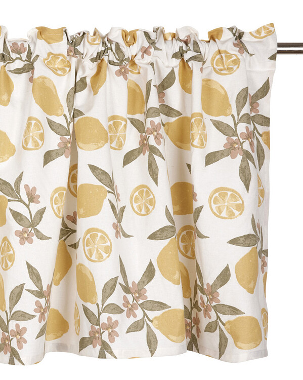 Vacker multibandskappa med ett Amalfi-inspirerat mönster av solgula citroner som ger rummet en fräsch och livfull känsla...