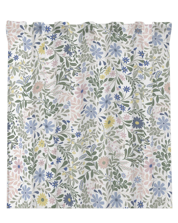 Ge rummet ett lyft med dessa färdigsydda gardinlängder i ett livfullt blommönster, skapat av en svensk designer. Tyget är tryckt på tvåvägsslubb, vilket ger en vacker struktur och som skapar liv och karaktär i gardinen. Multibandet gör det enkelt att hänga längderna på flera olika sätt – med fingerkrokar, direkt på stång eller med rynkbandskrokar – för att passa just din stil och ditt fönster.