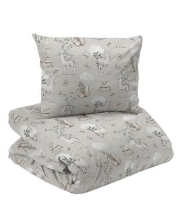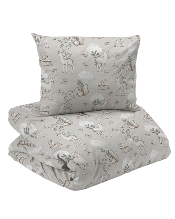 Underbart och harmoniskt bäddset med söta djur i skogen. Skapa en lugn och inbjudande atmosfär i barnrummet med detta bäddset prytt med inspirerande motiv från naturen. Tillverkat med en trådtäthet på 120 för en behaglig och skön känsla. Perfekt för små drömmare som älskar färg och fantasi!