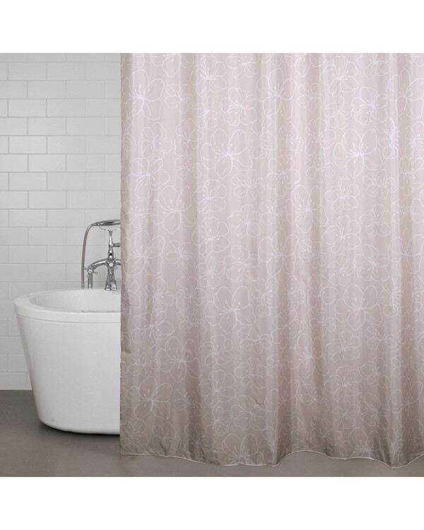 Gardiner > Färger > Rosa gardiner > Duschdraperi blommigt Flowers +upphängningsringar