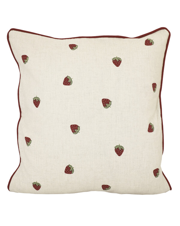Kuddfodral med jordgubbsmönster.