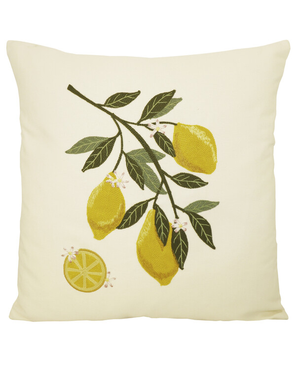 Låt hemmet blomstra med detta vackra exklusiva kuddfodral, med broderade citroner, grenar och blommor. Det detaljerade broderiet ger en handgjord känsla och tillför liv, färg och somrig charm till din inredning.