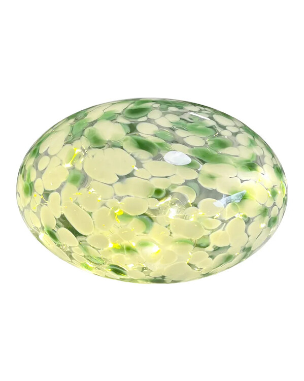 Skapa ett stämningsfullt och elegant ljus i ditt hem med denna dekorativa glaslampa i vackert melerat glas. Lampans organiska, ovala form tillsammans med det levande mönstret i glaset gör den till en exklusiv inredningsdetalj som passar lika bra i vardagsrum som sovrum eller hall.