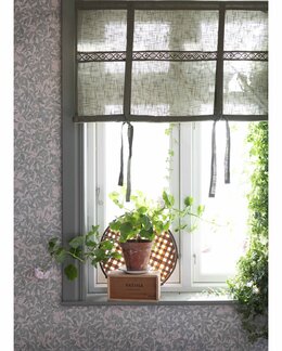 Underbar hiss/roll up gardin med vacker spetsdetalj i lantlig romantisk stil. Kombinera gärna med gardinkappan och längderna som finns i samma serie.