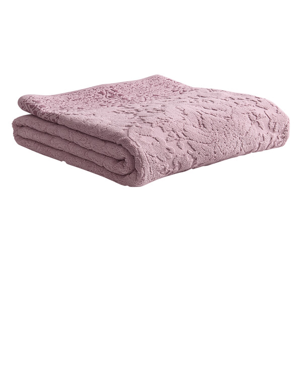 Jacquardvävd frotté. 100% bomull. Storlek 70x140 cm. Tvätt 60º , tvättas med liknande färger. Krympning max 5%. Färg Ros...