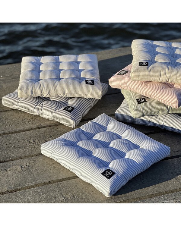 En vacker stolsdyna med mjuka ränder i vitt och rosa som ger ett fräscht och lekfullt uttryck. Den tidlösa färgkombinationen skapar både komfort och stil, och passar lika bra till vardags som vid festliga tillfällen. En dekorativ och praktisk detalj som lyfter hela sittplatsen.