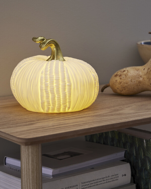Pumpkin finns tillgänglig i två olika storlekar, vilket gör det enkelt att kombinera flera tillsammans för ett personligt och harmoniskt uttryck. Avsedd för inomhusbruk och passar utmärkt som säsongsdekoration eller året-runt-inredning.
